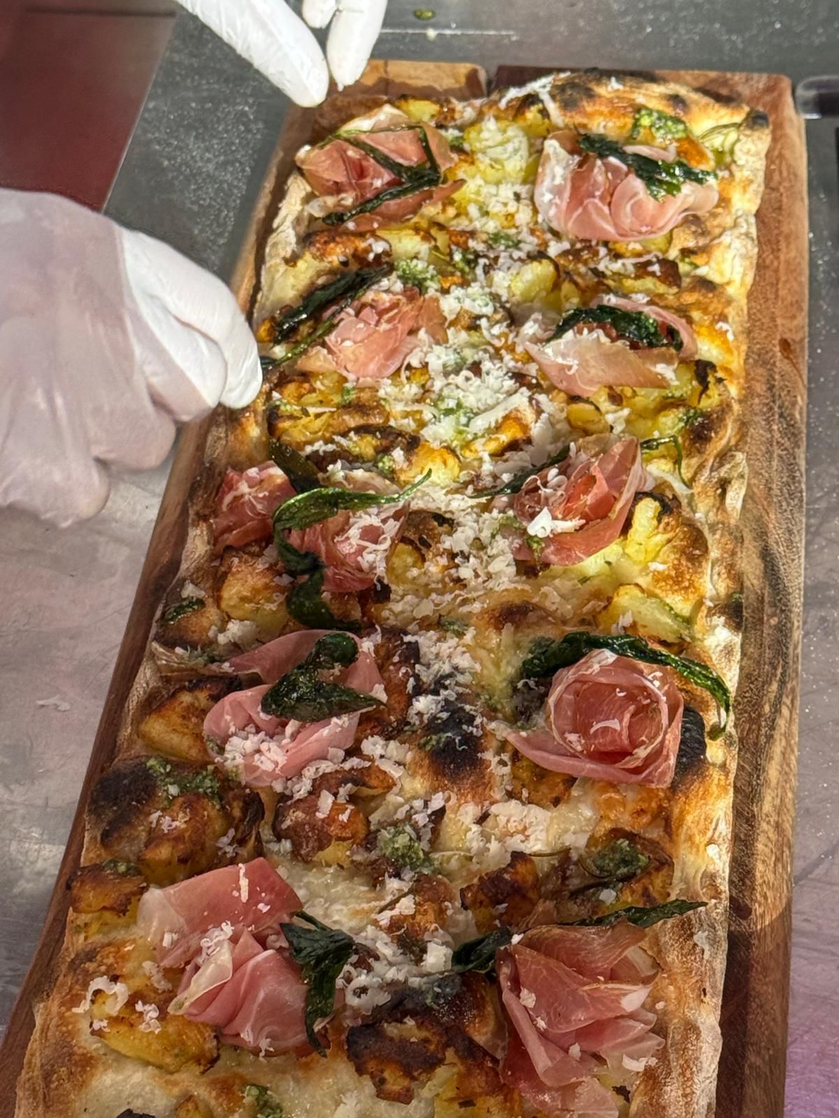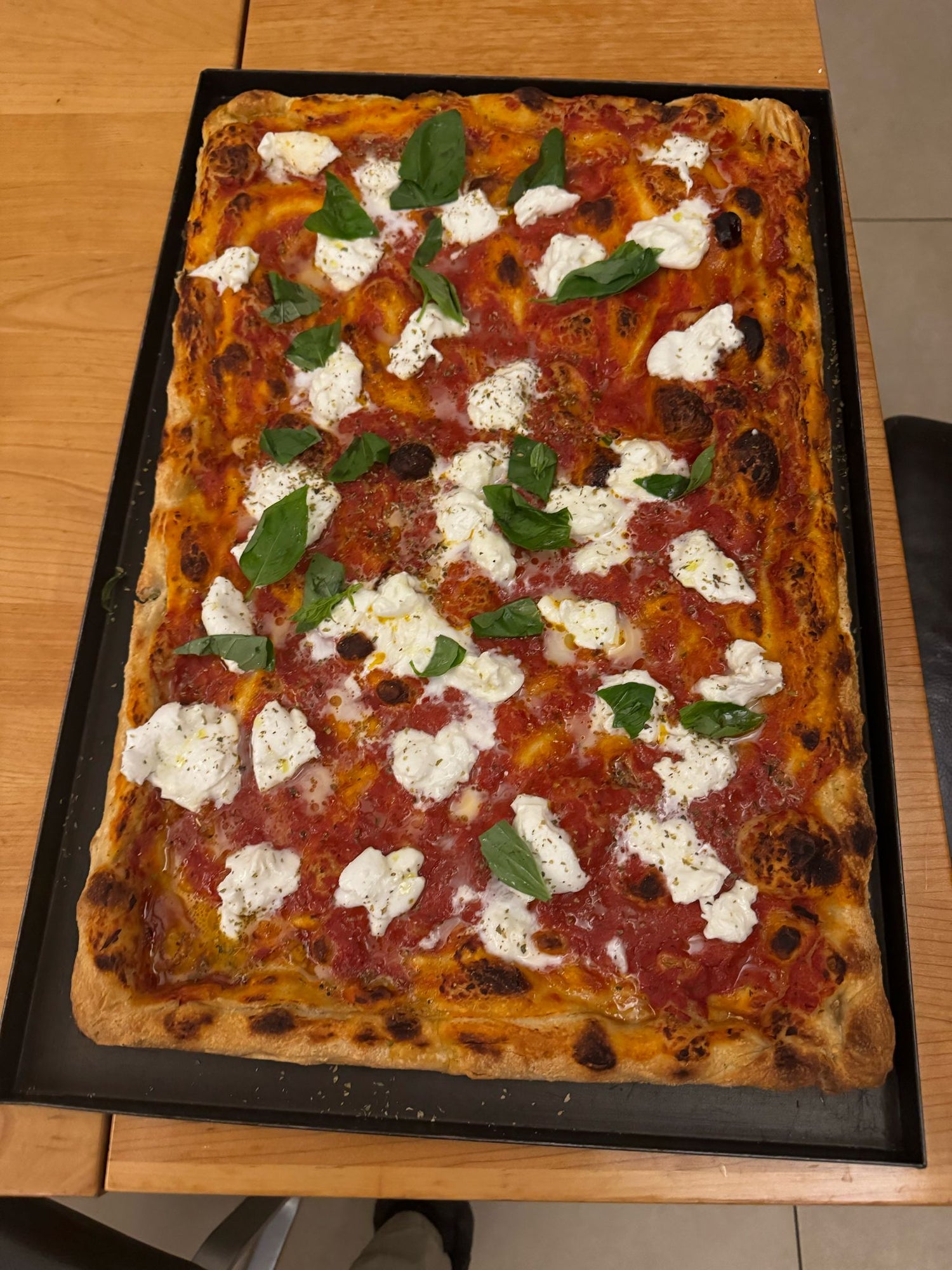 Unser Teig hat einen hohen Wasseranteil (80–85 % Hydration) und wird über 24 bis 72 Stunden geführt, um eine luftige, leicht verdauliche Textur zu schaffen. Dadurch wird jeder Bissen zu einem Genuss – leicht, knusprig und besonders aromatisch.